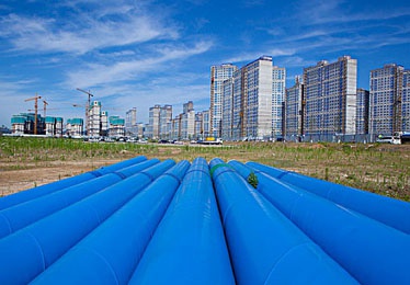 安裝工藝流程:備料—刮削氧化層—清潔焊接面—標(biāo)記承插深度—檢測管件線圈—轉(zhuǎn)配管件—檢查配合—固定連接處—管件編號—焊接—冷卻—局部回填—試壓驗(yàn)收—整體回填